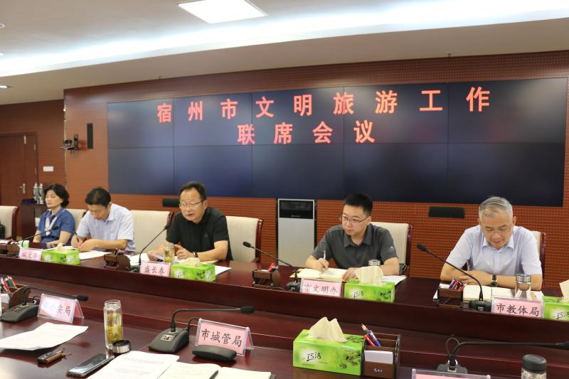 7月17日上午,宿州市文明旅游工作聯(lián)席會議在市政府第一會議室召開。市政府副秘書長盛長春出席會議,文明旅游工作聯(lián)席會議成員單位、埇橋區(qū)文化和旅游局、市區(qū)重點(diǎn)旅游景區(qū)、星級飯店等參加會議。市文化和旅游局黨組成員、副局長縱文華主持會議。